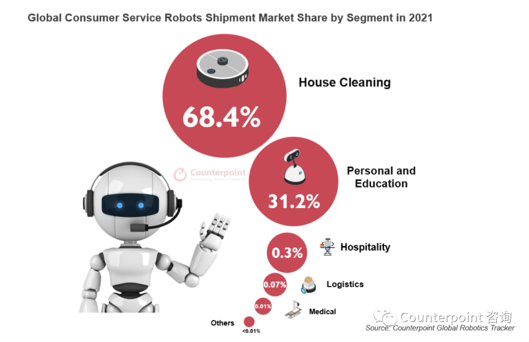 依据Counterpoint发布的最新陈述,2021年全球消费级服务类机器人商场添加25%。以下为具体内容。
